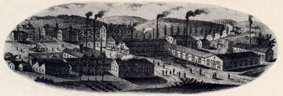 Dahlbruch um 1900. Vorne rechts neben den Werkshallen die Schweisfurth