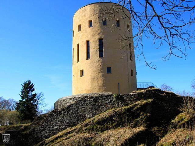 Ginsburg-Ruine mit Bergfried-ähnlichem Hauptturm aus dem 20. Jahrhundert, gesehen von Südwesten (Bild Frank Behnsen)